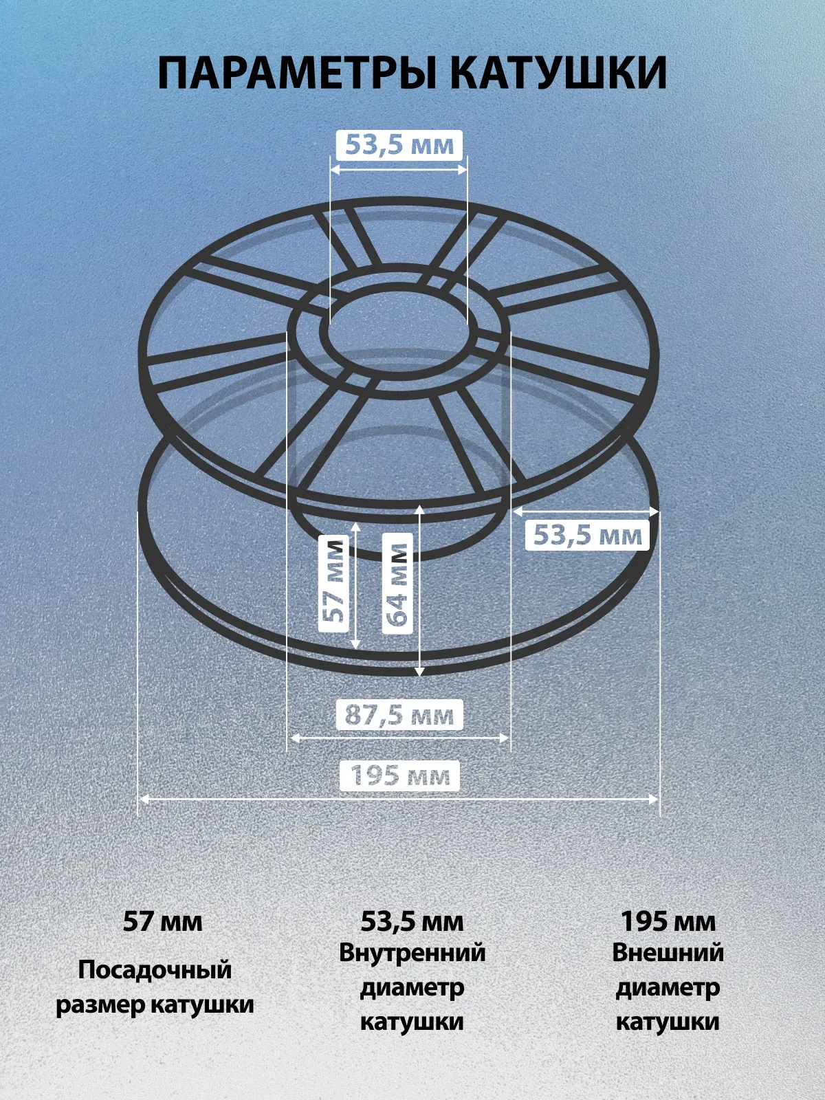 Диаметр пластика: 1.75 мм, длина пластика: 386 м, температура печати - 220-260 °С.