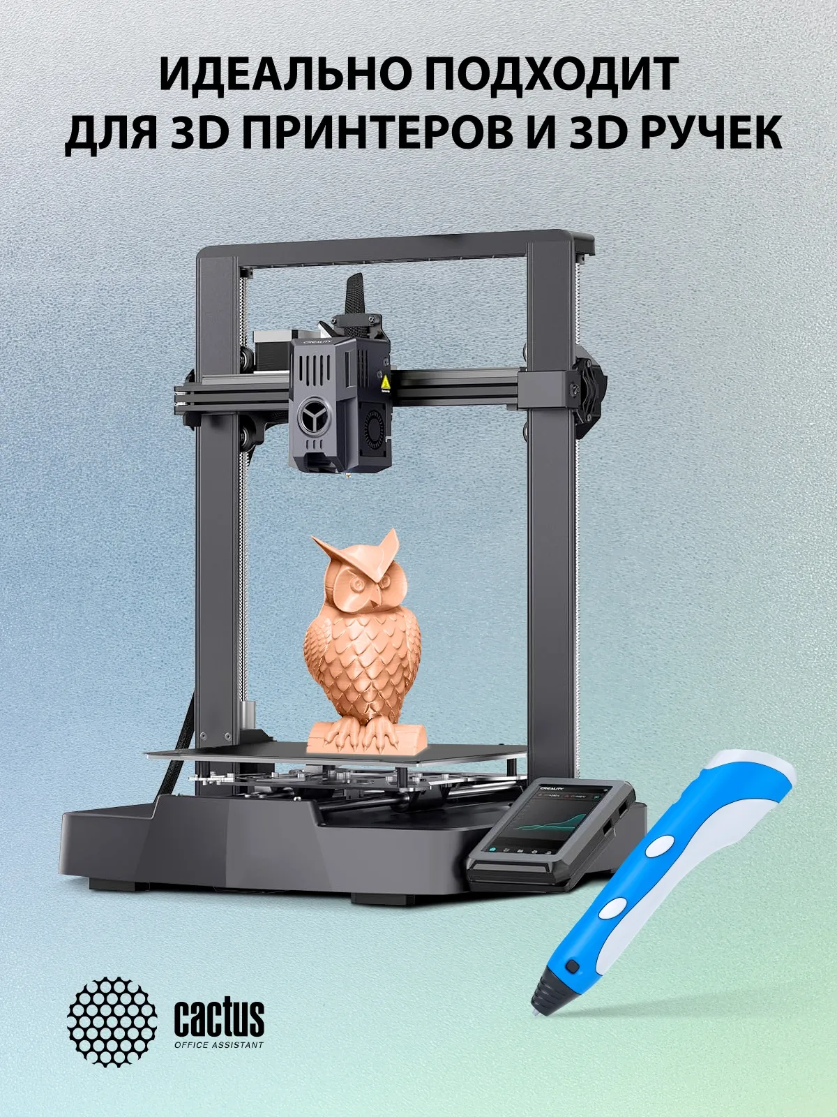Диаметр пластика: 1.75 мм, длина пластика: 386 м, температура печати - 220-260 °С.