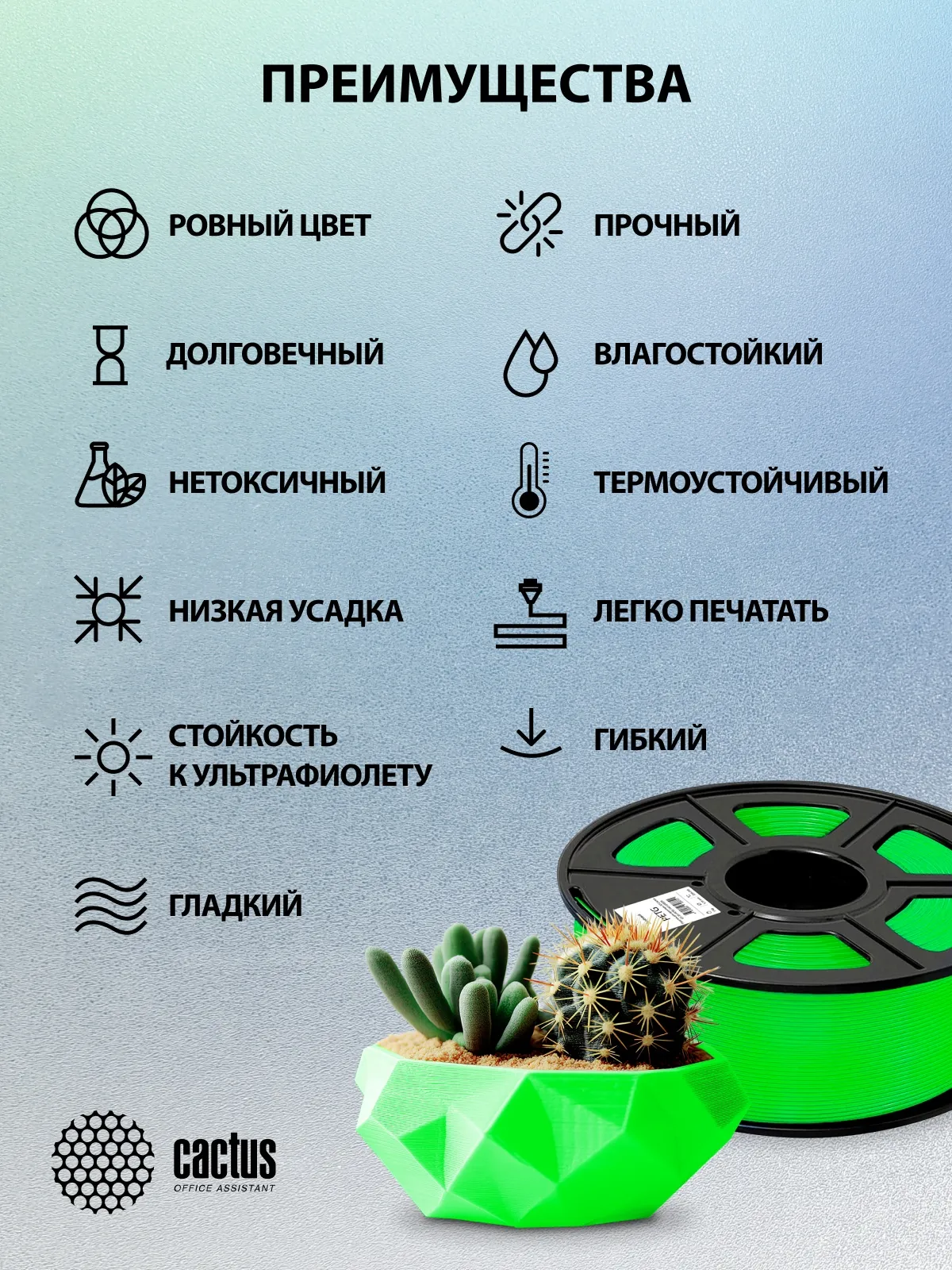 Пластик для 3D-принтера CS-3D-PETG-1KG-GREEN от CACTUS - это высококачественный материал, идеально подходящий для создания прочных и долговечных изделий. Катушка весом 1 кг содержит зелёный пластик PETG, известный своей прочностью, гибкостью и устойчивостью к ударам. Этот пластик станет отличным выбором для печати различных предметов, от декоративных элементов до функциональных деталей. Благодаря своей универсальности и простоте использования, он подходит как для начинающих, так и для опытных пользователей 3D-печати. Создавайте свои уникальные проекты с уверенностью, используя пластик CS-3D-PETG-1KG-GREEN.