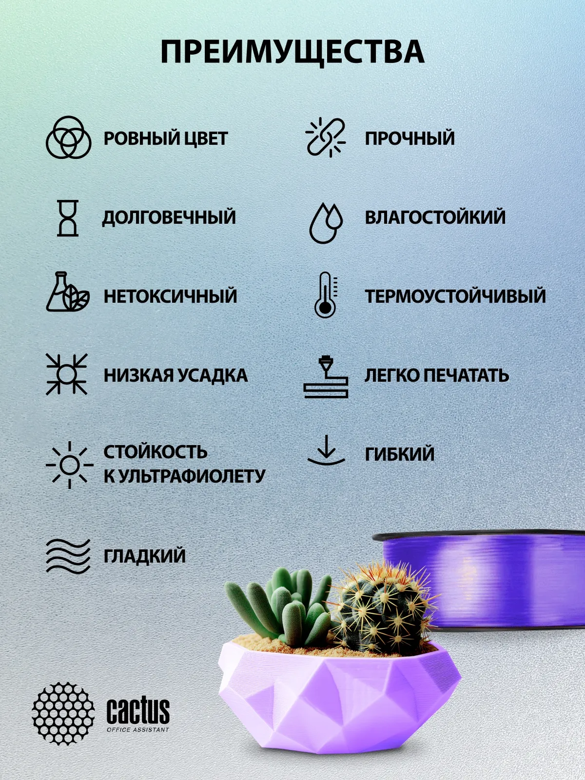 Пластик для 3D-принтера CS-3D-PETG-1KG-T-PURPLE от бренда CACTUS – это высококачественный материал, предназначенный для создания прочных и красивых 3D-моделей. Катушка весом 1 кг содержит фиолетовый пластик, который идеально подходит для печати различных объектов, от декоративных элементов до функциональных деталей. Этот пластик отличается высокой прочностью, устойчивостью к ударам и воздействию окружающей среды, что делает его идеальным выбором для создания долговечных изделий. Благодаря своей универсальности и доступной цене, пластик CS-3D-PETG-1KG-T-PURPLE станет незаменимым помощником для всех любителей 3D-печати, позволяя воплощать в жизнь самые смелые идеи.