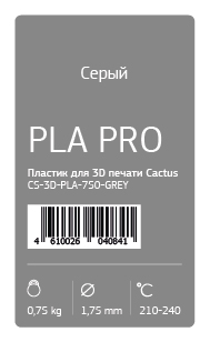 Пластик для 3D принтера Cactus CS-3D-PLA-750-GREY. Тип пластика: PLA. Цвет: серый. Диаметр: 1,75 мм.