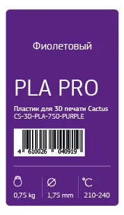 Пластик для 3D принтера Cactus CS-3D-PLA-750-PURPLE. Тип пластика: PLA. Цвет: фиолетовый. Диаметр: 1,75 мм.