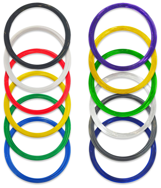 Материал пластика: PETG. Диаметр пластика: 1.75 мм. Длина пластика: 10 м. Набор PETG пластика для 3D ручек. Материал полностью безвреден для здоровья человека. Он не токсичен и не вызывает аллергических реакций. Материал быстро затвердевает и сохраняет любую заданную пользователем форму. Чтобы избежать поломки готовых работ или потерю ими цвета, необходимо избегать контакта пластика с водой, моющими средствами и бытовой химией. Цвета в комплекте: - Чёрный - Белый - Красный - Жёлтый - Зелёный - Синий - Прозрачный Жёлтый - Прозрачный Зелёный - Прозрачный Натуральный - Прозрачный Оранжевый - Прозрачный Синий - Прозрачный Фиолетовый.