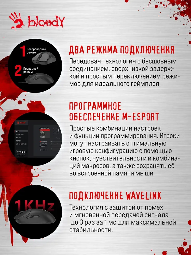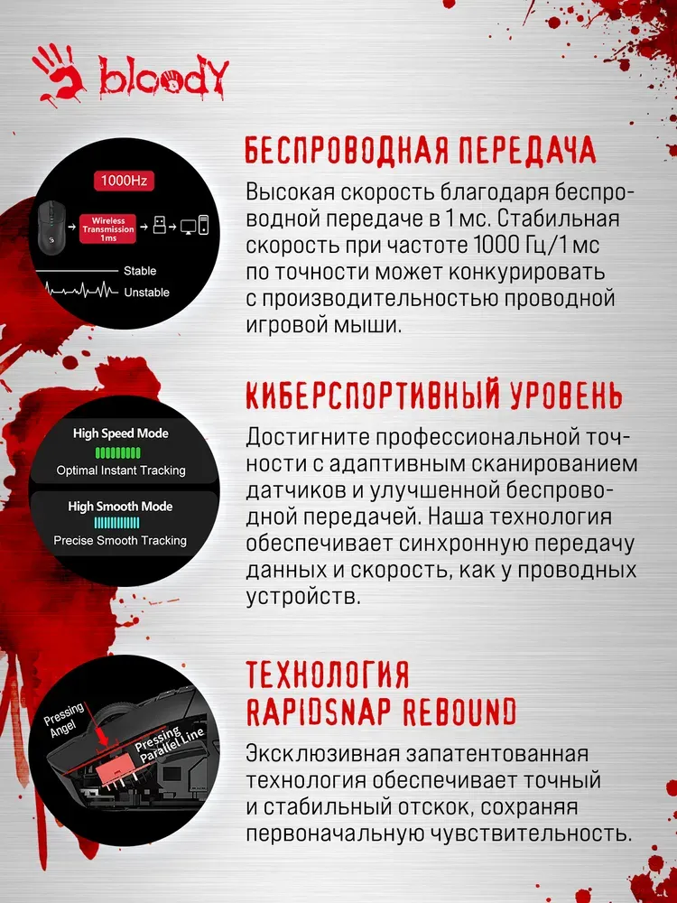 Высокая скорость благодаря беспроводной передаче в 1 мс. Стабильная скорость при частоте 1000 Гц/1 мс по точности может конкурировать с производительностью проводной игровой мыши.