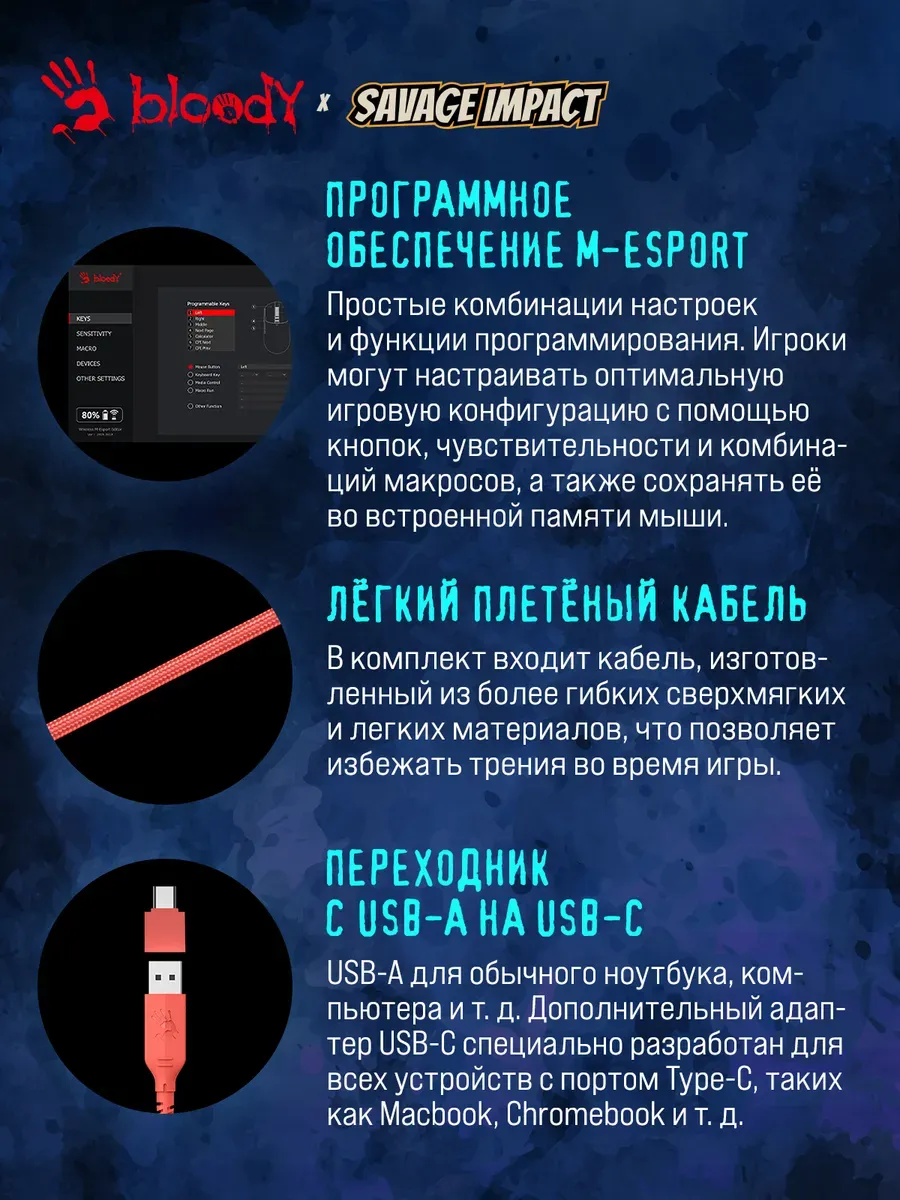 Простые комбинации настроек и функции программирования. Игроки могут настраивать оптимальную игровую конфигурацию с помощью кнопок, чувствительности и комбинаций макросов, а также сохранять её во встроенной памяти мыши.