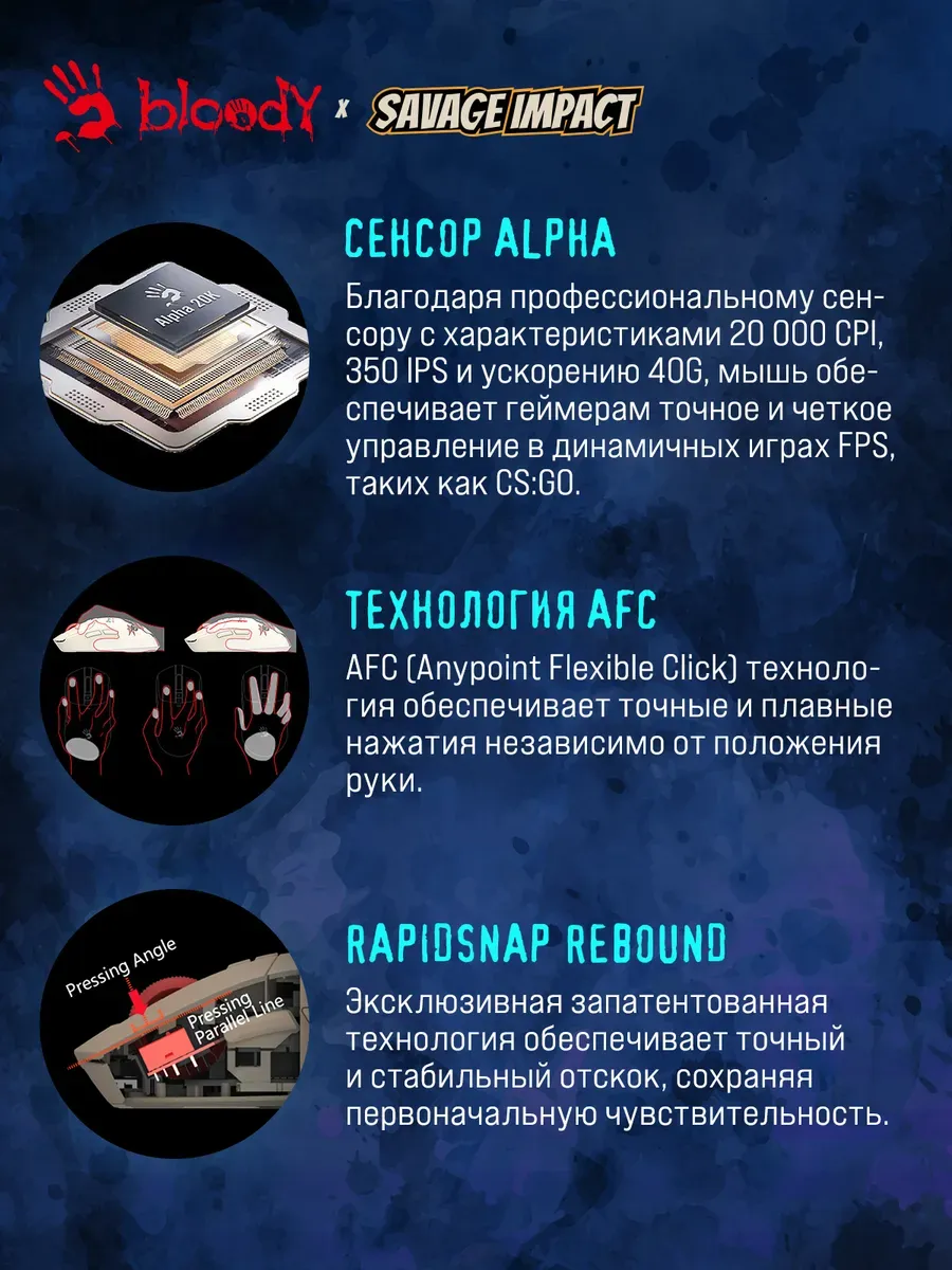 AFC (Anypoint Flexible Click) технология обеспечивает точные и плавные нажатия независимо от положения руки.