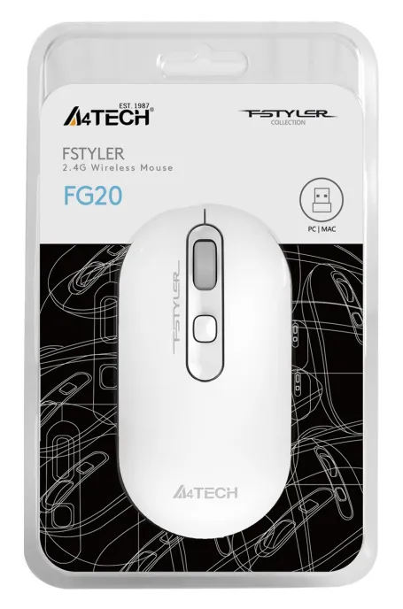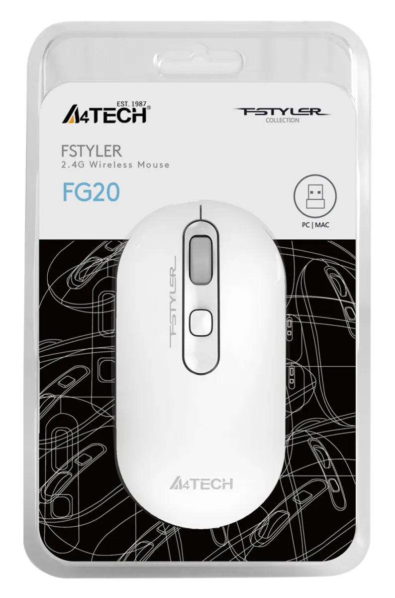 Мышь A4Tech Fstyler FG20 — это беспроводная оптическая мышь для ноутбука, выполненная в белом цвете. Она оснащена четырьмя кнопками и разрешением 2000 dpi, что обеспечивает высокую точность и плавность управления. Поддержка разрешений -1200/1600/2000. Благодаря беспроводной технологии USB, мышь работает на расстоянии до 15 метров от компьютера, что позволяет свободно перемещаться во время работы. Питание от батарей AAA .Эргономичный дизайн и мягкий прорезиненный материал обеспечивают комфортное использование в течение длительного времени.