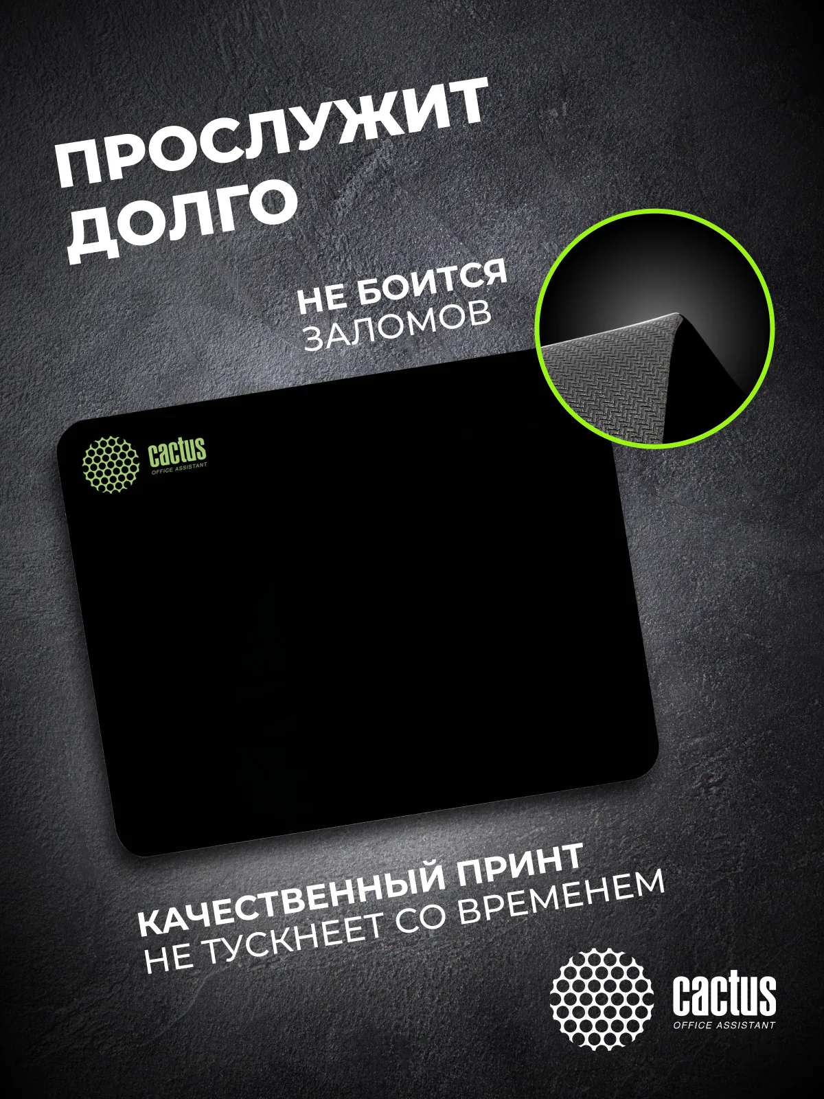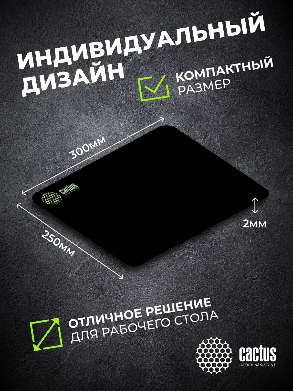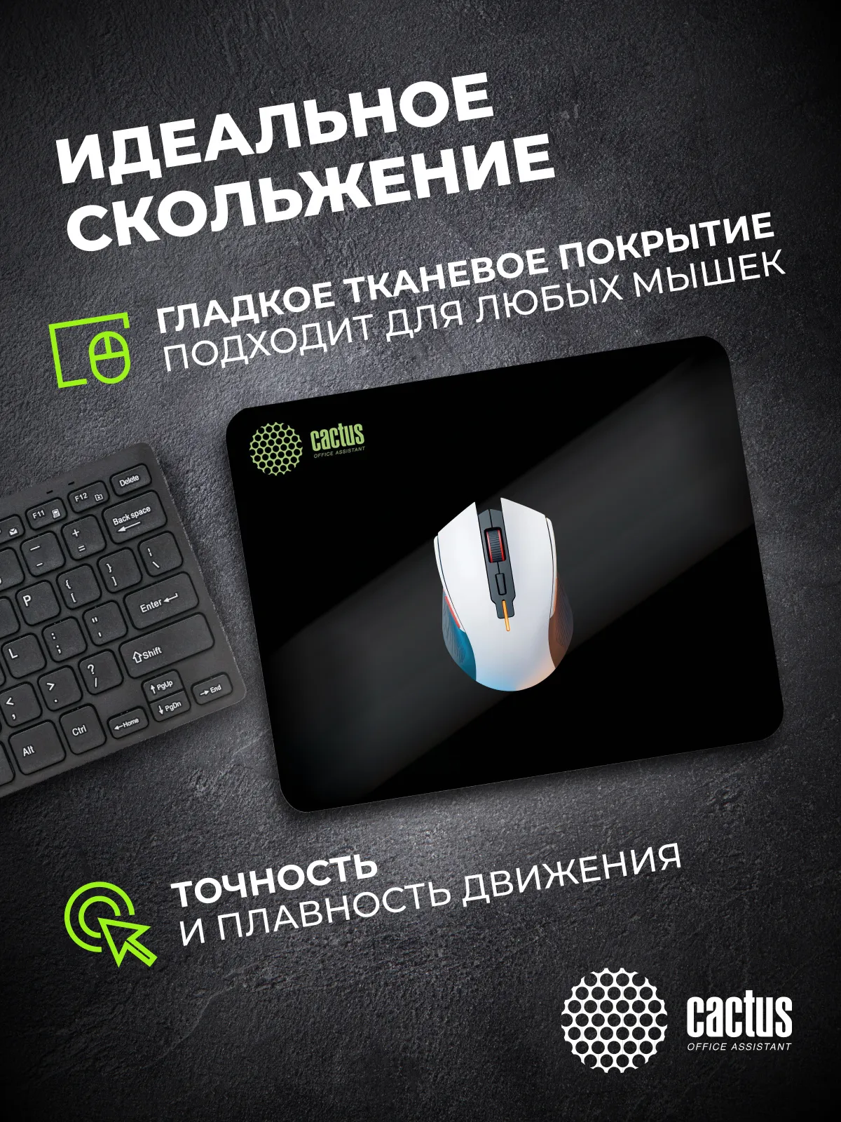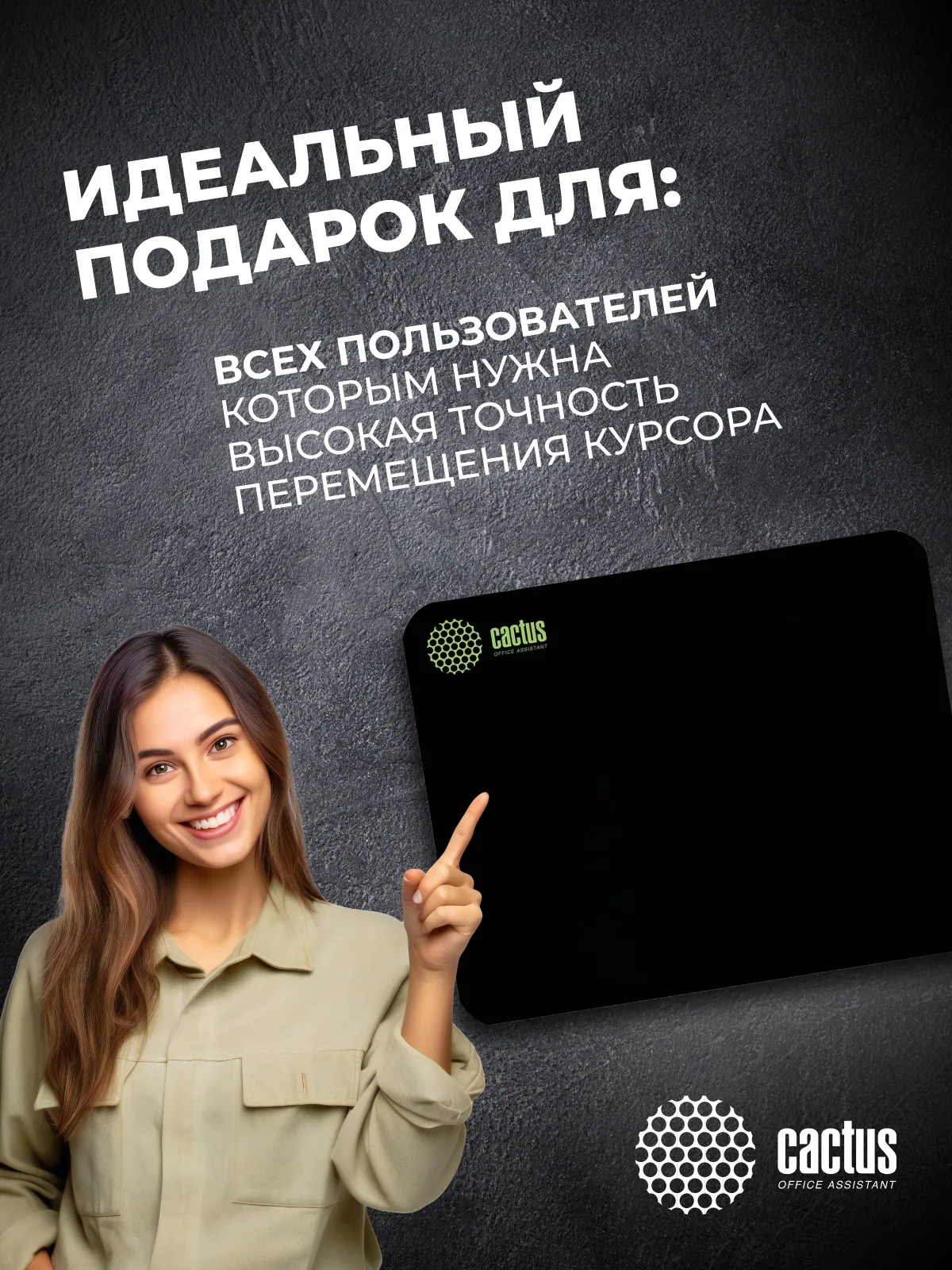 Коврик для мыши Cactus с размерами 300x250 идеально подойдёт фанатам логических головоломок, квестов и стратегий. Он также будет полезен и пользователям офисных программ и графических редакторов, помогая более полно взаимодействовать с компьютерной мышью и точно позиционировать курсор.