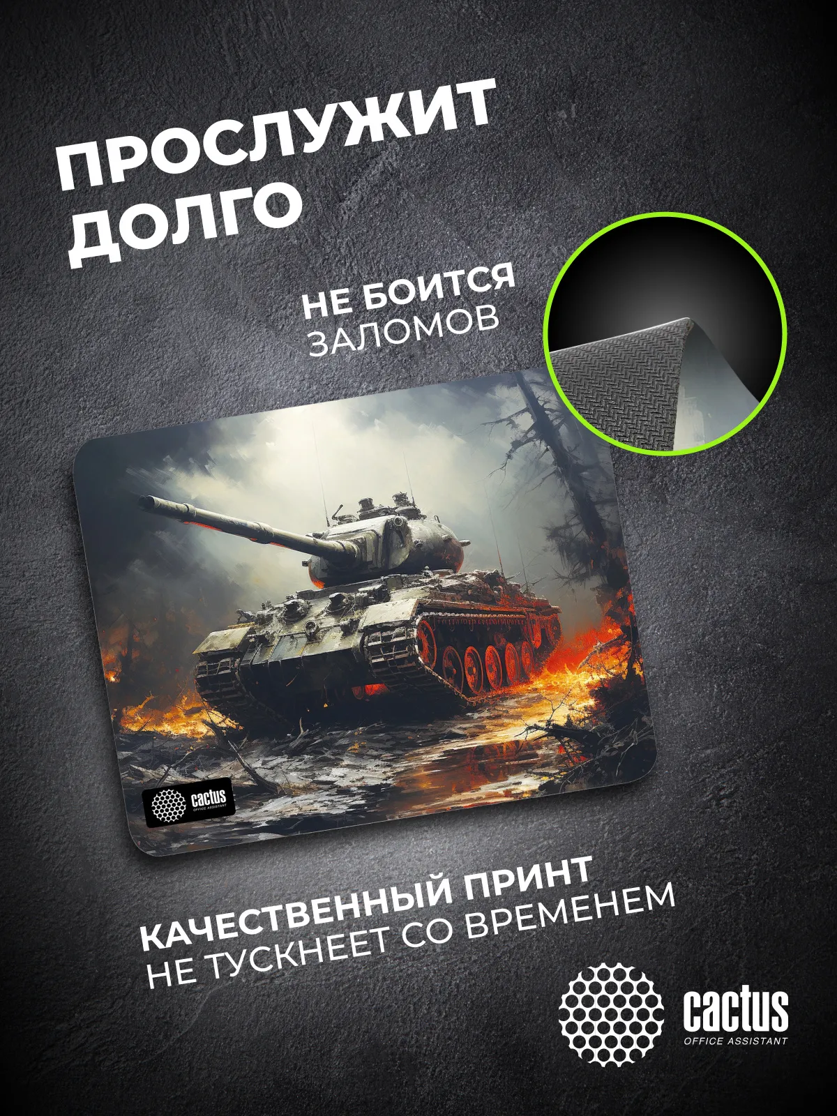 Коврик для мыши CS-MP-D04S - это идеальное решение для любителей компьютерных игр и стильной периферии. Он станет настоящим украшением вашего рабочего стола благодаря уникальному дизайну в виде танка и яркой цветовой гамме. Коврик выполнен из высококачественного материала, обеспечивающего отличное скольжение мыши и быстрое ее перемещение. Благодаря плотной текстуре и прорезиненной основе коврик не скользит по поверхности стола, что делает работу с мышью более комфортной. Край коврика защищён от истирания прочной гладкой прострочкой (оверлоком), которая не натирает кожу. Размер: 250x200x3мм.