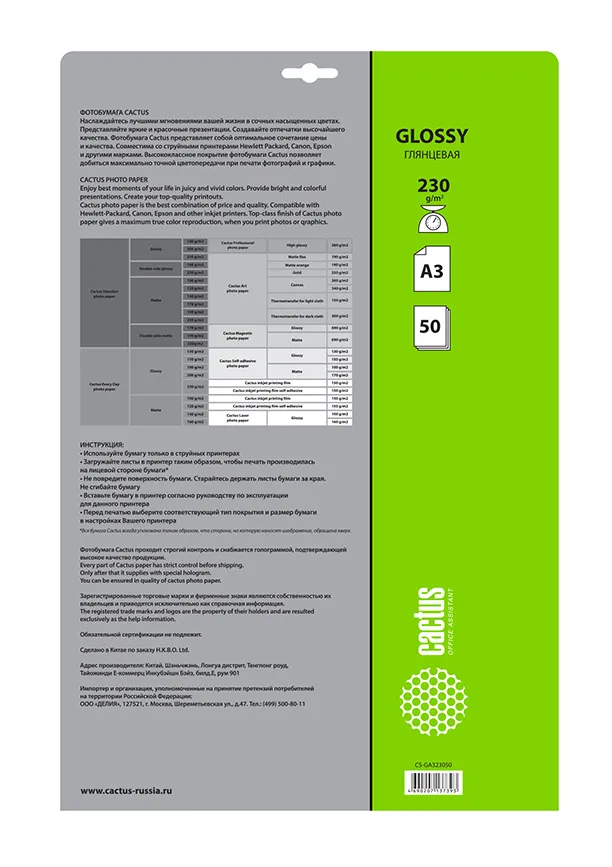 Подходит для струйной печати.