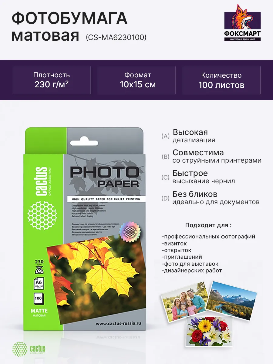 Подходит для струйной печати.