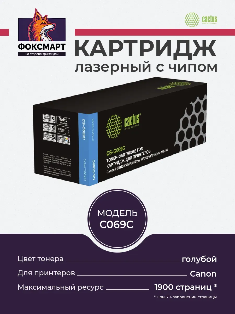 Картридж лазерный CS-C069С от Cactus – это идеальное решение для владельцев принтеров Canon i-SENSYS MF752Cdw, MF752, MF754Cdw, MF754. Этот совместимый картридж предлагает высококачественную печать с использованием голубых чернил, обеспечивая яркие и насыщенные оттенки в ваших документах и проектах. Благодаря лазерной технологии, вы получите четкость и долговечность печати, что делает этот картридж отличным выбором для офисной работы и личного использования. Выбирая картридж CS-C069С от Cactus, вы гарантируете себе экономичность и надежность, сохраняя при этом высокий уровень качества печати.