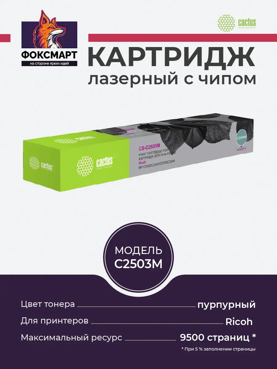 Картридж лазерный CS-C2503М - это совместимый высококачественный картридж, предназначенный для работы с широким спектром лазерных принтеров. Совместим с RICOH Aficio MP C2003SP, Aficio MP C2003ZSP, Aficio MP C2004ASP, Aficio MP C2004SP, MP C2011SP, Aficio MP C2503SP, Aficio MP C2503ZSP, Aficio MP C2504ASP, Aficio MP C2504SP. Ресурс 9500 страниц. Идеально подходит для тех, кому нужна профессиональная и стабильная печать различных текстовых документов, графиков, таблиц и других материалов. Простая установка, замена и обслуживание картриджа делают его использование удобным и быстрым, а прочная конструкция гарантирует долгий срок службы и стабильную работу вашего принтера.