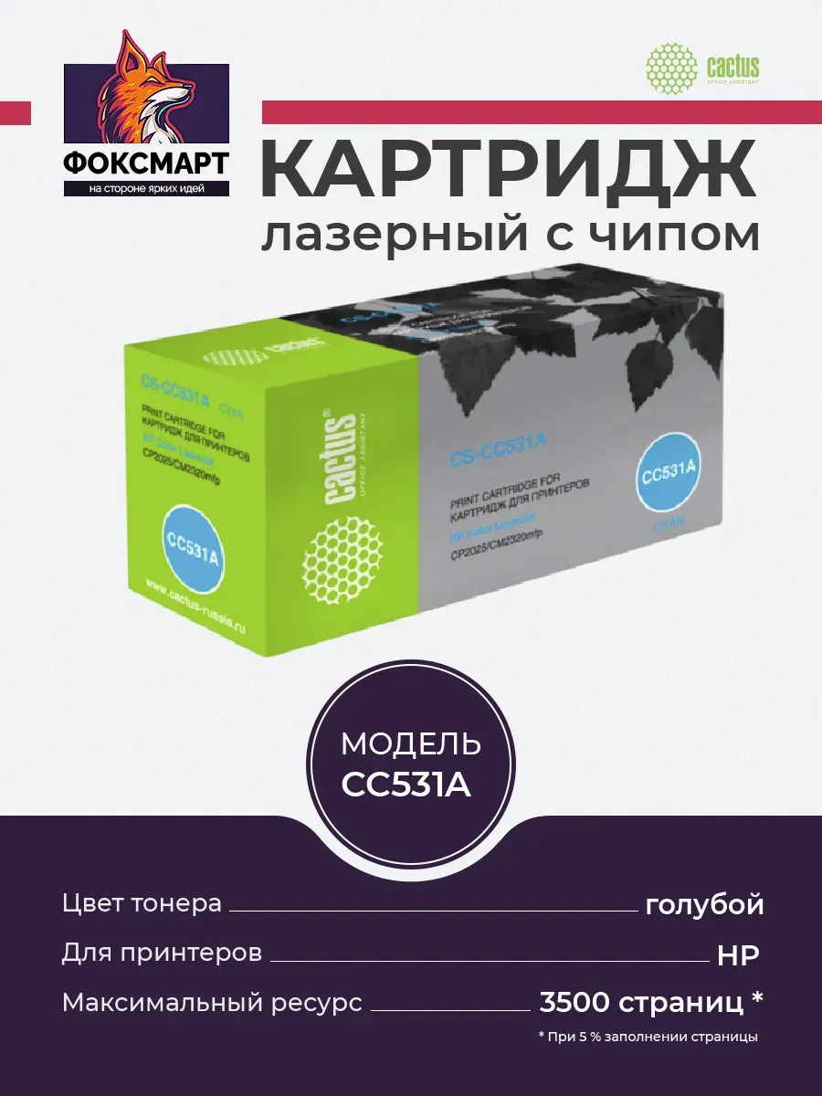 Картридж лазерный Cactus CS-CC531A предназначен для лазерной печати в аппаратах HP. Cовместим с различными моделями лазерных принтеров. Этот картридж идеально подойдет для тех, кому необходима профессиональная и стабильная печать текстовых документов и графических изображений. Простота установки и обслуживания картриджа делают его удобным для использования как в офисе, так и дома. Совместим с устройствами: HP LaserJet CM2320 MFP, CM2320FXi (CC435A), CM2320N, CM2320NF (CC436A), CP2020 Series, CP2025 (CB493A), CP2025DN (CB495A), CP2025N (CB494A), CP2025X.