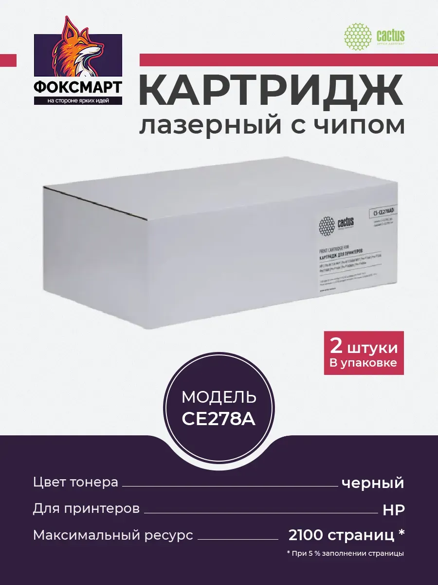 Лазерный картридж Cactus CS-CE278AS. Предназначен для использования в принтерах HP LaserJet M1536 MFP Pro, M1536dnf MFP Pro, P1560 Pro, P1566 Pro, P1600 Pro, P1606 Pro, P1606dn Pro, P1606w Pro . Страна производства - Китай. Цвет – черный. Используя картридж Cactus CS-CE278A у Вас будет возможность распечатать около 2100 информационных страниц (при 5% заполнении).
