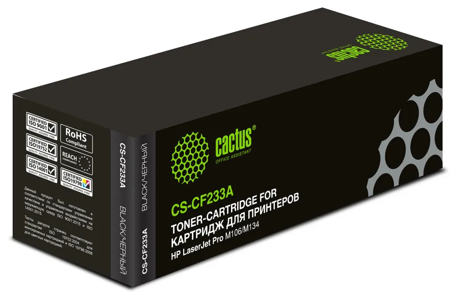 Совместимый лазерный картридж Cactus CF233A черный предоставит Вам чёткие и насыщенные напечатанные документы. При печати отсутствуют видимые отличия от оригинального картриджа. В картриджах используются только качественные материалы, которые не навредят вашему печатному устройству. Ресурс полностью соответствует оригинальному. Картридж является оптимальным решением для Вас и для вашего оборудования. Легко заменяется на новый без дополнительных инструментов, за счёт чего не требует специальных навыков. Совместим с устройствами: HP LaserJet Ultra M106w, Ultra M134A, Ultra M134fn.