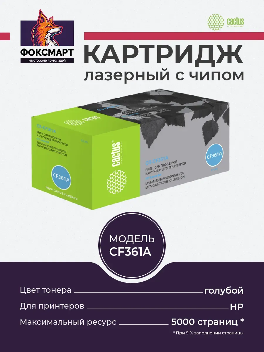 Совместимый лазерный картридж Cactus CF361A голубой предоставит Вам чёткие и насыщенные напечатанные документы. При печати отсутствуют видимые отличия от оригинального картриджа. В картриджах используются только качественные материалы, которые не навредят вашему печатному устройству. Ресурс полностью соответствует оригинальному. Картридж является оптимальным решением для Вас и для вашего оборудования. Легко заменяется на новый без дополнительных инструментов, за счёт чего не требует специальных навыков. Совместим с устройствами: HP Color LaserJet Enterprise M552dn, M553dn, M553n, M553x.