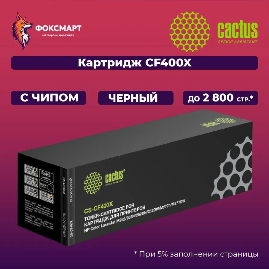 Совместимый лазерный картридж Cactus CS-CF400Х черный предоставит Вам чёткие и насыщенные напечатанные документы. При печати отсутствуют видимые отличия от оригинального картриджа. В картриджах используются только качественные материалы, которые не навредят вашему печатному устройству. Ресурс полностью соответствует оригинальному. Картриджи Cactus – оптимальное решение для Вас и для вашего оборудования. Совместим с устройствами: HP Color LaserJet PRO M252, PRO M252DW, PRO M252N, PRO Mfp M277, PRO Mfp M277DW, PRO Mfp M277N.