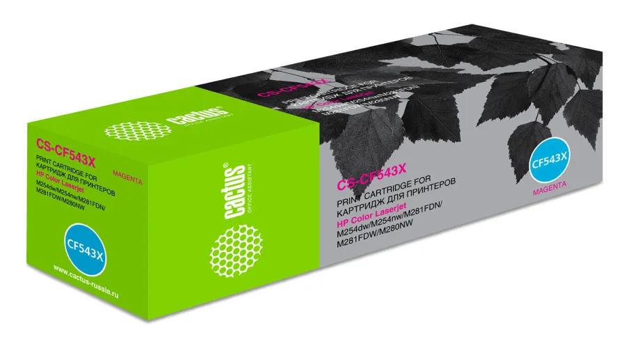 Картридж Cactus CS-CF543X - это надежный и экономичный выбор для печати высококачественных документов. Совместимый с популярными моделями принтеров HP Color LaserJet M254dw Pro, HP Color LaserJet M254nw Pro, HP Color LaserJet M280nw Pro, HP Color LaserJet M281fdn Pro, этот лазерный картридж обеспечивает четкий и яркий пурпурный цвет, гарантируя превосходный результат печати. Максимальный ресурс картриджа составляет 2500 страниц, что делает его идеальным решением для офисов и домашних пользователей с умеренной нагрузкой. Установка картриджа проста и быстра, а его компактный размер не займет много места в вашем принтере. Cactus CS-CF543X - это отличный вариант для тех, кто ищет качественную печать по доступной цене.