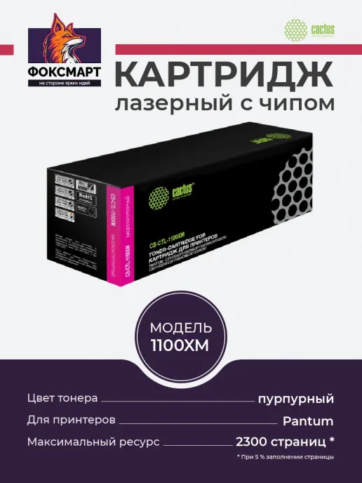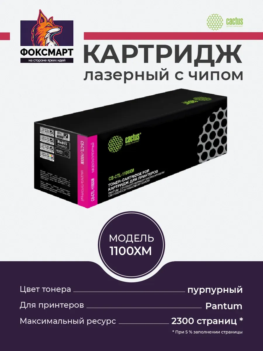 Картридж лазерный CS-CTL1100XM - это высококачественный картридж, совместимый с принтерами Pantum CM1100DN, CM1100DW, CP1100, CP1100ADN, CP1100ADW, CP1100DN, CP1100DW . Он обеспечивает быстрый и качественный результат печати, а также экономит время и ресурсы. Картридж имеет ресурс 2300 стр. при использовании листа на 5%, что делает его достаточно экономичным для использования в домашних условиях или офисе. Картридж легко заменяется и не требует специализированных навыков или инструментов.