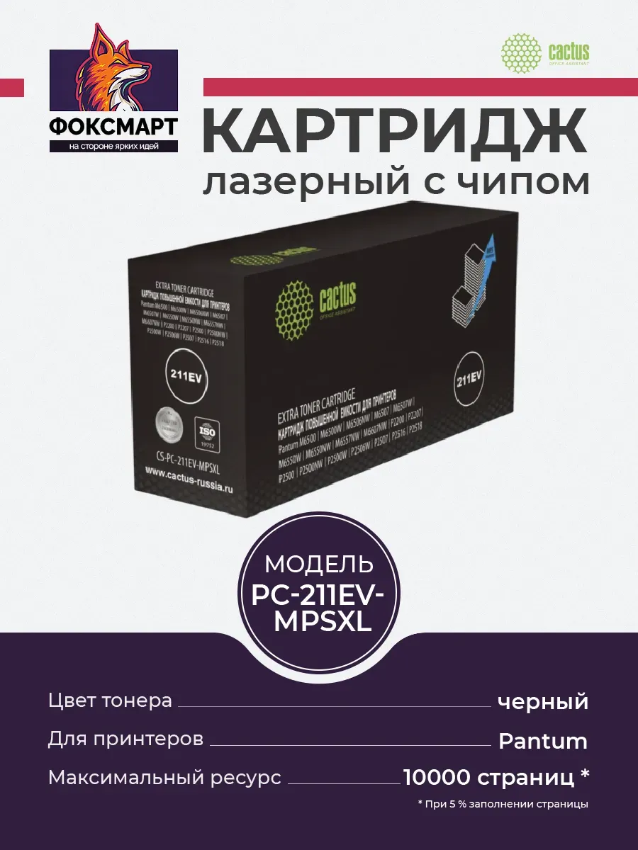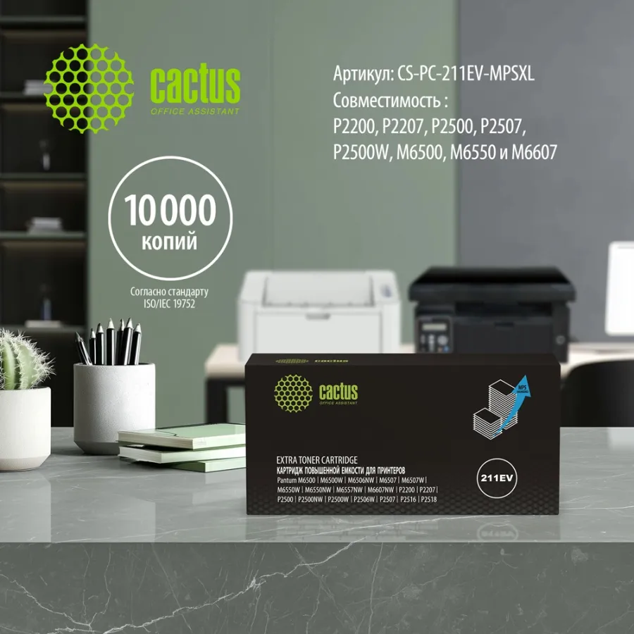 Картридж CACTUS CS-PC-211EV-MPSXL - это надежный и экономичный выбор для печати документов высокого качества. Этот совместимый лазерный картридж, специально разработанный для принтеров Pantum M6500, Pantum M6507, Pantum P2200, Pantum P2207 и Pantum P2500, обеспечивает четкий и насыщенный черный цвет на каждой странице. С максимальным ресурсом 10000 страниц, картридж CACTUS CS-PC-211EV-MPSXL станет отличным решением для дома или офиса с умеренным объемом печати. Он гарантирует стабильную работу принтера и экономит ваши расходы на расходные материалы. Простота установки и использования делает его идеальным выбором для любого пользователя.