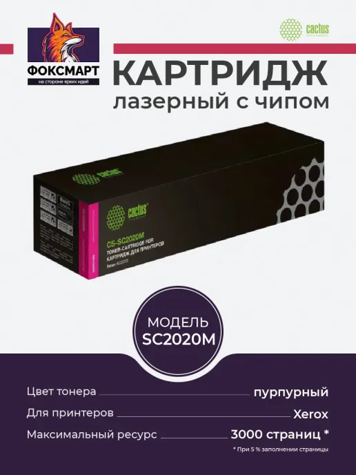 Совместимый лазерный картридж Cactus CS-SC2020M предоставит Вам чёткие и насыщенные напечатанные документы. При печати отсутствуют видимые отличия от оригинального картриджа. В картриджах используются только качественные материалы, которые не навредят вашему печатному устройству. Ресурс полностью соответствует оригинальному. Картриджи Cactus – оптимальное решение для Вас и для вашего оборудования. Легко заменяется на новый без дополнительных инструментов, за счёт чего не требует специальных навыков. Совместим с устройствами: Xerox Document Centre SC2020.