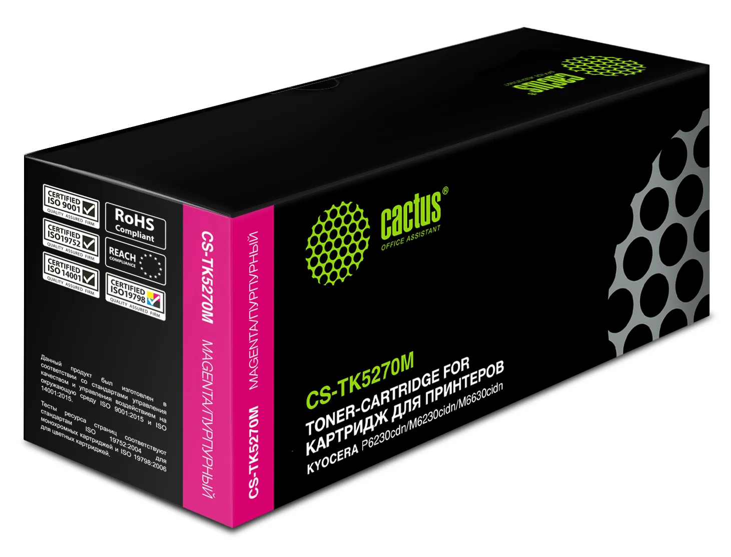 Совместимый лазерный картридж Cactus CS-TK5270M предоставит Вам чёткие и насыщенные напечатанные документы. При печати отсутствуют видимые отличия от оригинального картриджа. В картриджах используются только качественные материалы, которые не навредят вашему печатному устройству. Ресурс полностью соответствует оригинальному. Картриджи Cactus – оптимальное решение для Вас и для вашего оборудования. Легко заменяется на новый без дополнительных инструментов, за счёт чего не требует специальных навыков. Совместим с устройствами: KYOCERA Ecosys P6230cdn; M6230cidn; M6630cidn.