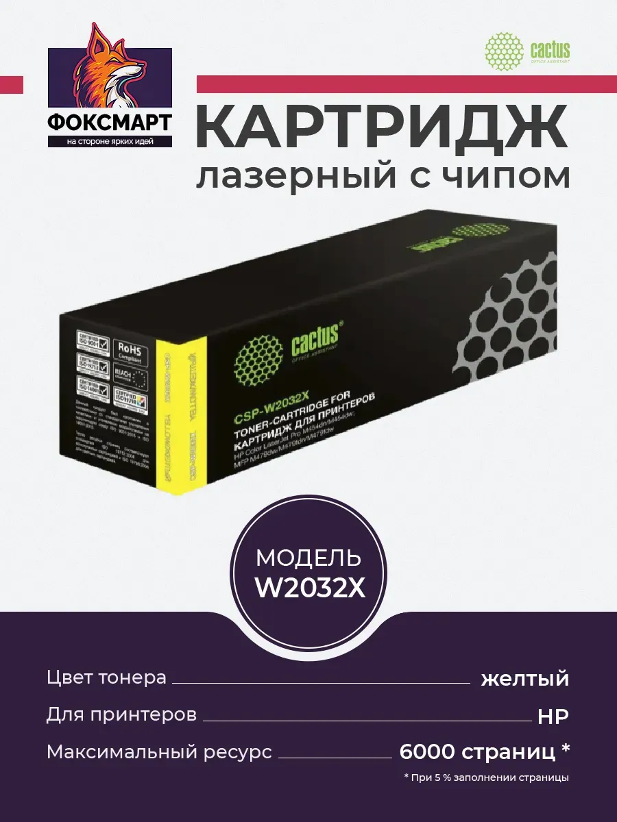 Cactus CSP-W2032X - это высококачественный совместимый лазерный картридж желтого цвета, специально разработанный для обеспечения превосходного качества печати на принтерах HP Color LaserJet. Он идеально подходит для моделей HP Color LaserJet M454dn Pro, M454dw Pro, M479dw Pro MFP, M479fdn Pro MFP, M479fdw Pro MFP, M479fnw Pro MFP, гарантируя яркие и четкие отпечатки. Картридж Cactus CSPW2032X обеспечивает высокую производительность и надежность, позволяя вам с легкостью справляться с любыми задачами печати. Его инновационная конструкция и высококачественные компоненты гарантируют длительный срок службы и превосходное качество печати. Выбирая Cactus CSP-W2032X, вы получаете экономичное решение без ущерба для качества.