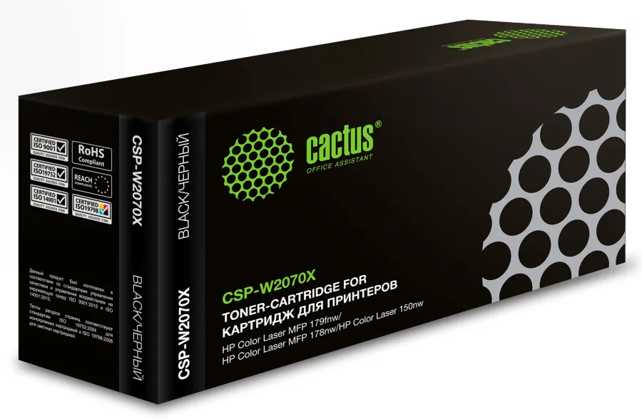 Картридж лазерный CSP-W2070X с обновляемым чипом под последнюю прошивку аппарата. Обновление чипов до текущих прошивок аппаратов можно произвести в СЦ Cactus. Версия чипа: V7. Совместим с принтерами HP: HP Color Laser 150a, HP Color Laser 150nw, HP Color Laser 178nw MFP, HP Color Laser 179fnw MFP.