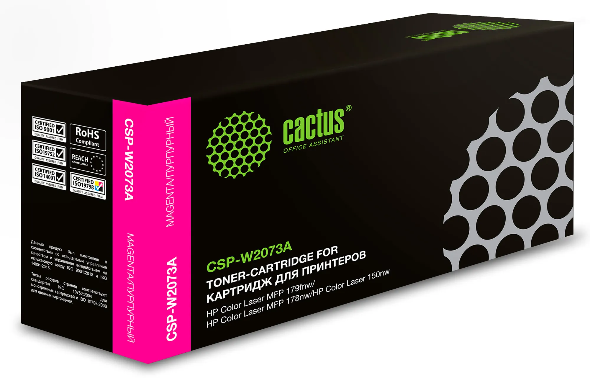 Картридж лазерный CSP-W2073A с обновляемым чипом под последнюю прошивку аппарата. Обновление чипов до текущих прошивок аппаратов можно произвести в СЦ Cactus. Совместим с принтерами HP: HP Color Laser 150a, HP Color Laser 150nw, HP Color Laser 178nw MFP, HP Color Laser 179fnw MFP.