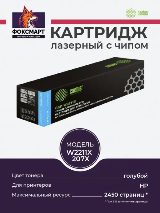 Картридж лазерный CSP-W2211X предоставит Вам чёткие и насыщенные напечатанные документы. При печати отсутствуют видимые отличия от оригинального картриджа. В картриджах используются только качественные материалы, которые не навредят вашему печатному устройству. Обновление чипов до текущих прошивок аппаратов можно произвести в СЦ Cactus. Совместим с принтерами: HP Color LaserJet Pro M255d, Pro M283cdw, Pro M283fdw, Pro MFP M282nw.