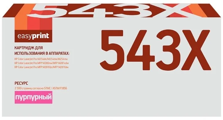 Картридж EasyPrint LH-CF543X для HP Color LaserJet Pro M254dn/M254dw/M254nw/M280nw/M281fdn/M281fdw/M281cdw (2500 стр.) пурпурный, с чипом