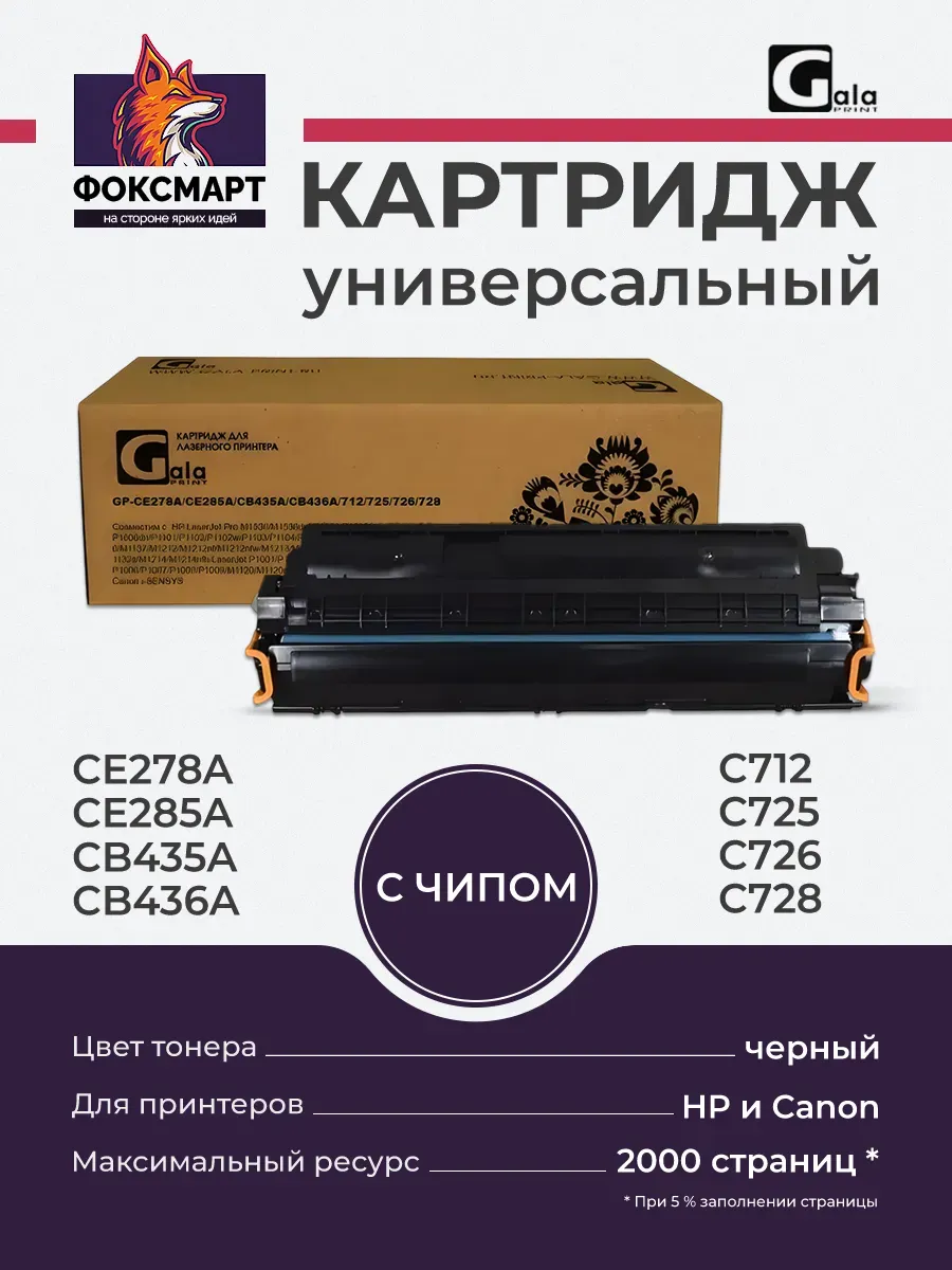 Картридж GP-CE278A/CE285A/CB435A/CB436A/712/725/726/728 - это качественный совместимый картридж для принтеров HP и Canon, который обеспечивает высокую производительность и надежность. Картридж имеет большой объем чернил, что позволяет напечатать большое количество страниц и сэкономить на затратах на печать. Он легко устанавливается в принтере и не требует специальных навыков для использования. Максимальный ресурс - 2000 страниц.