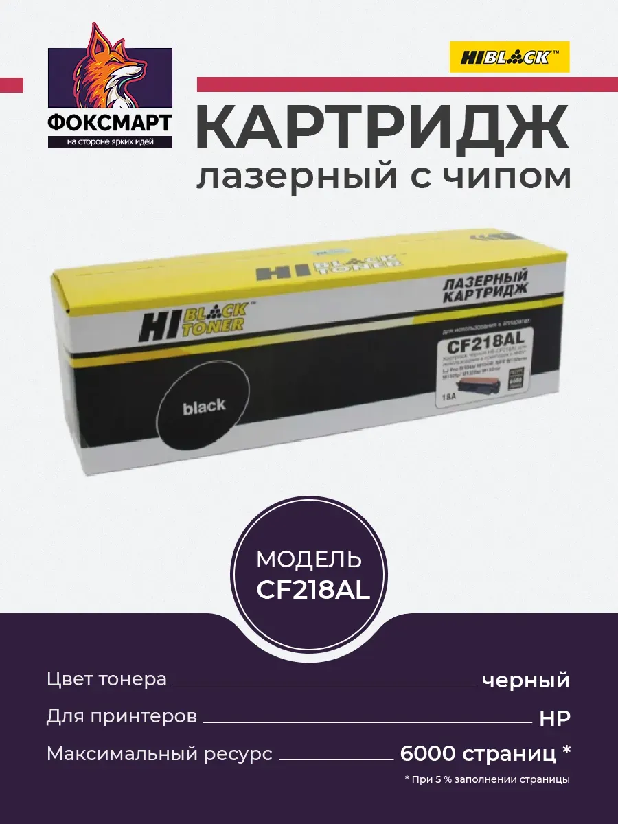 Тонер-картридж Hi-Black (CF218AL) увеличенной емкости для лазерных принтеров и МФУ HP. Ресурс составляет 6000 копий при 5% заполнении листа (данный показатель может изменяться в виду особенностей тех или иных настроек, выставляемых при печати). Cовместим с различными моделями лазерных принтеров. Этот картридж идеально подойдет для тех, кому необходима профессиональная и стабильная печать текстовых документов и графических изображений. Простота установки и обслуживания картриджа делают его удобным для использования как в офисе, так и дома. Совместим с принтерами: HP LaserJet M104a, M104w, M132a, M132fn, M132fw, M132nw.