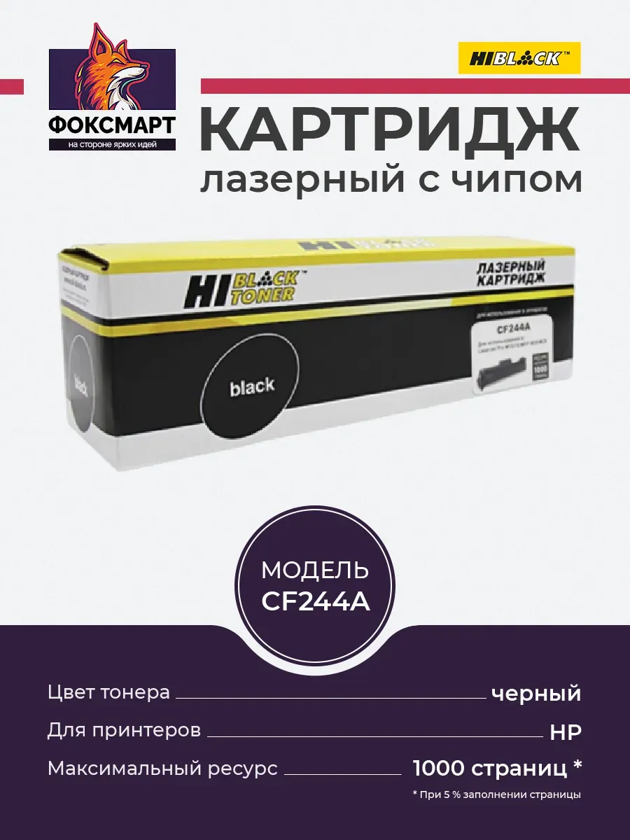 Тонер-картридж Hi-Black (CF244A) для лазерных принтеров и МФУ HP. Ресурс составляет 1000 копий при 5% заполнении листа (данный показатель может изменяться в виду особенностей тех или иных настроек, выставляемых при печати). Cовместим с различными моделями лазерных принтеров. Этот картридж идеально подойдет для тех, кому необходима профессиональная и стабильная печать текстовых документов и графических изображений. Простота установки и обслуживания картриджа делают его удобным для использования как в офисе, так и дома. Совместим с принтерами: HP LaserJet Pro M15a, M15w, HP LaserJet Pro MFP M28a, M28w.