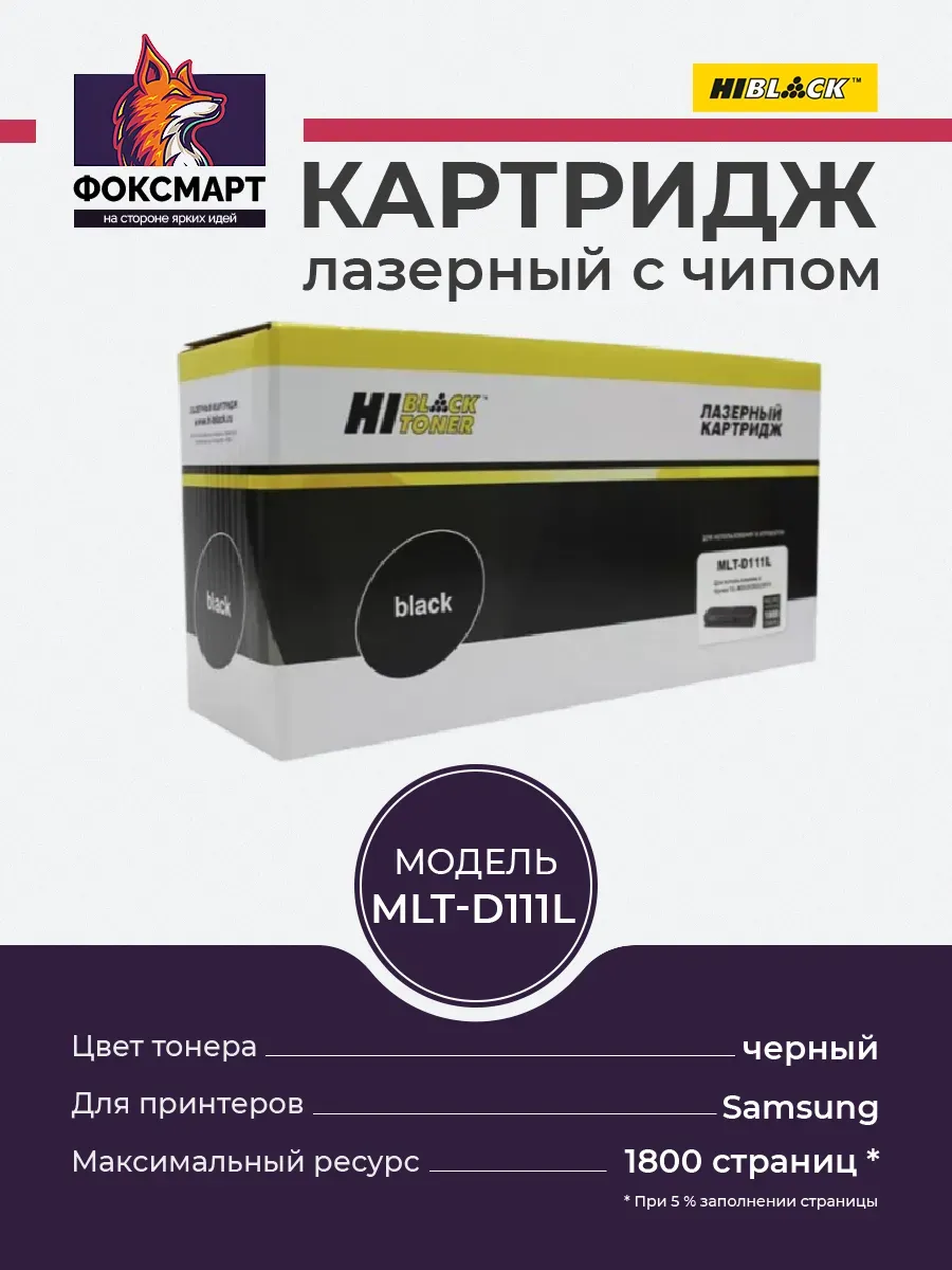 Картридж Hi-Black (MLT-D111L) для лазерных принтеров и МФУ Samsung. Ресурс составляет 1800 копий при 5% заполнении листа (данный показатель может изменяться в виду особенностей тех или иных настроек, выставляемых при печати). Cовместим с различными моделями лазерных принтеров. Этот картридж идеально подойдет для тех, кому необходима профессиональная и стабильная печать текстовых документов и графических изображений. Простота установки и обслуживания картриджа делают его удобным для использования как в офисе, так и дома. Совместим с принтерами: Samsung Xpress SL-M2020, SL-M2020W, SL-M2070, SL-M2070FW, SL-M2070W.