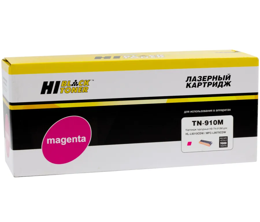 Тонер-картридж Hi-Black (TN-910M) увеличенной ёмкости для цветных лазерных принтеров и МФУ Brother. Ресурс составляет 9000 копий при 5% заполнении листа (данный показатель может изменяться в виду особенностей тех или иных настроек, выставляемых при печати). Cовместим с различными моделями лазерных принтеров. Этот картридж идеально подойдет для тех, кому необходима профессиональная и стабильная печать текстовых документов и графических изображений. Простота установки и обслуживания картриджа делают его удобным для использования как в офисе, так и дома.
