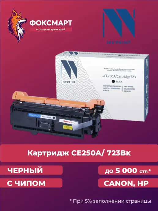 Совместимый лазерный картридж NV PRINT CE250A/723Bk черный предоставит Вам чёткие и насыщенные напечатанные документы. При печати отсутствуют видимые отличия от оригинального картриджа. В картриджах используются только качественные материалы, которые не навредят вашему печатному устройству. Ресурс полностью соответствует оригинальному. Картридж является оптимальным решением для Вас и для вашего оборудования. Легко заменяется на новый без дополнительных инструментов, за счёт чего не требует специальных навыков. Совместим с устройствами: HP Color LaserJet MFP CM3530, CP3525x, CP3525n, CP3525dn, CP3525, CP3520, CM3530, Canon i-SENSYS LBP7750Cdn, LBP7750Cd, LBP7750.