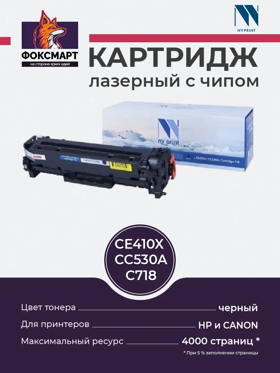 Совместимый лазерный картридж NV PRINT CE410X/CC530A/718Bk черный предоставит Вам чёткие и насыщенные напечатанные документы. При печати отсутствуют видимые отличия от оригинального картриджа. В картриджах используются только качественные материалы, которые не навредят вашему печатному устройству. Ресурс полностью соответствует оригинальному. Картридж является оптимальным решением для Вас и для вашего оборудования. Легко заменяется на новый без дополнительных инструментов, за счёт чего не требует специальных навыков. Совместим с устройствами: HP Color LaserJet Pro 400 MFP M475dw, Pro 400 MFP M475dn, Pro 400 MFP M475, Pro 400 M451nw, Pro 400 M451dw, Pro 400 M451dn, Pro 400 M451, Pro 300 MFP M375nw, Pro 300 MFP M375, Pro 300 M351a, Pro 300 M351, CP2027n, CP2027dn, CP2027, CP2026n, CP2026dn, CP2026, CP2025n, CP2025dn, CP2025, CP2024n, CP2024dn, CP2024, Canon i-SENSYS MF8580Cdw, MF8550Cdn, MF8540Cdn, MF8380Cdw, MF8360Cdn, MF8350Cdn, MF8340Cdn, MF8330Cdn, MF729Cx, MF728Cdw, MF724Cdw, MF720C, LBP7680Cx, LBP7660Cdn, LBP7210Cdn, LBP7200Cdn.