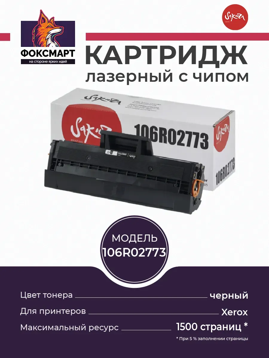 Картридж лазерный Sakura 106R02773.Черный. Совместим с XEROX Phaser3020, WC3025(обновленный чип). Ресурс составляет до 1500 стр. Картридж легко устанавливается и не требует специальных навыков для замены.