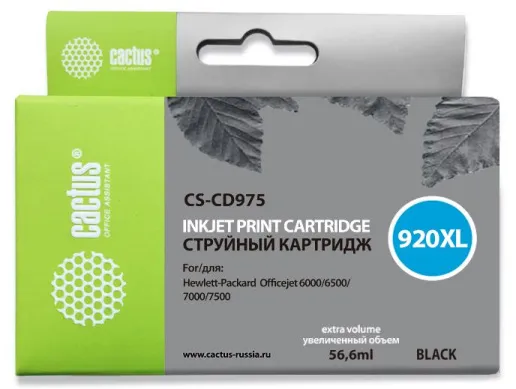 Картридж струйный Cactus CS-CD975 №920XL для струйной печати в аппаратах HP. Совместим с устройствами: HP OfficeJet 6000, HP OfficeJet 6500, HP OfficeJet 6500a (E710a, E710N), HP OfficeJet 7000, HP OfficeJet 7500, HP OfficeJet 7500a (E910a).