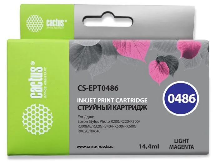 Струйный картридж Cactus CS-EPT0486 предназначен для струйных принтеров и МФУ. Насыщенный цвет чернил обеспечивает высокое качество печати. Картридж легко устанавливается в оборудование. Картридж оснащён чипом, который обеспечивает корректное взаимодействие с принтером и контроль расхода чернил. Заправлен высококачественными чернилами на водной основе, которые гарантируют стабильную и яркую печать. Совместим с устройствами: Epson PM A870, PM D770, Stylus Photo R200, R210, R220, R300, R300M, R310, R320, R340, RX300, RX500, RX510, RX600, RX620, RX630, RX640.