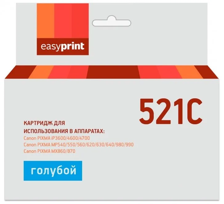 Картридж EasyPrint IC-CLI521C для Canon PIXMA iP3600/4600/4600x/4700/MP540/540x/550/560/620/620B/630/640/980/990/MX860/870 (535 стр.), голубой, с чипом