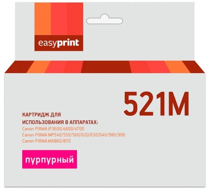 Картридж EasyPrint IC-CLI521M для Canon PIXMA iP3600/4600/4600x/4700/MP540/540x/550/560/620/620B/630/640/980/990/MX860/870 (510 стр.), пурпурный, с чипом
