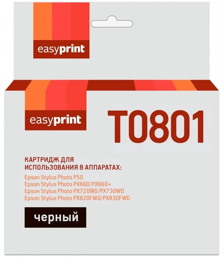 Картридж EasyPrint IE-T0801 для Epson Stylus Photo P50/PX660/PX660+/PX720WD/PX730WD/PX820FWD/PX830FWD (330 стр.), черный, с чипом
