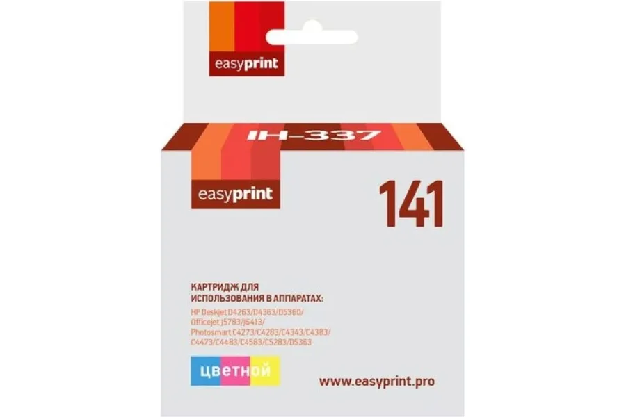 Картридж EasyPrint IC-H337 №141 для HP Deskjet D4260/D4263/D4363/D5360/Officejet J5730/J5783/J6405/J6410/J6413/J6415/J6424/J6450/J6480/J6488/Photosmart C4205/C4270/C4272/C4273/C4275/C4280/C4283/C4285/C4293/C4294/C4340/C4343/C4380/C4383/C4385/C4388/C4390/C4424/C4435/C4440/C4450/C4470/C4472/C4473/C4475/C4480/C4483/C4485/C4493/C4524/C4580/C4583/C4585/C4588/C4599/C5200/C5270/C5280/C5283/C5288/C5290/C5293/D5345/D5360/D5363 (170 стр.), цветной