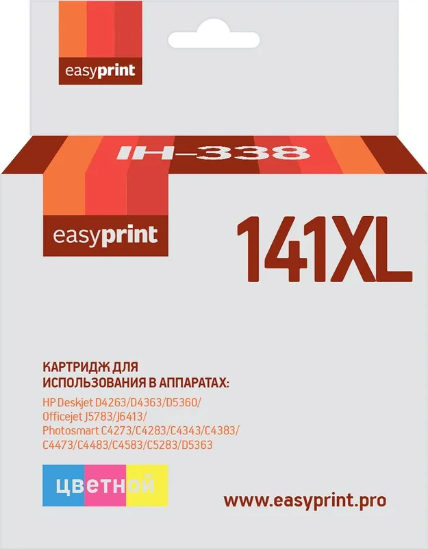 Картридж EasyPrint IH-338 №141XL для HP Deskjet D4260/D4263/D4363/D5360/Officejet J5730/J5783/J6405/J6410/J6413/J6415/J6424/J6450/J6480/J6488/Photosmart C4205/C4270/C4272/C4273/C4275/C4280/C4283/C4285/C4293/C4294/C4340/C4343/C4380/C4383/C4385/C4388/C4390/C4424/C4435/C4440/C4450/C4470/C4472/C4473/C4475/C4480/C4483/C4485/C4493/C4524/C4580/C4583/C4585/C4588/C4599/C5200/C5270/C5280/C5283/C5288/C5290/C5293/D5345/D5360/D5363 (170 стр.), цветной