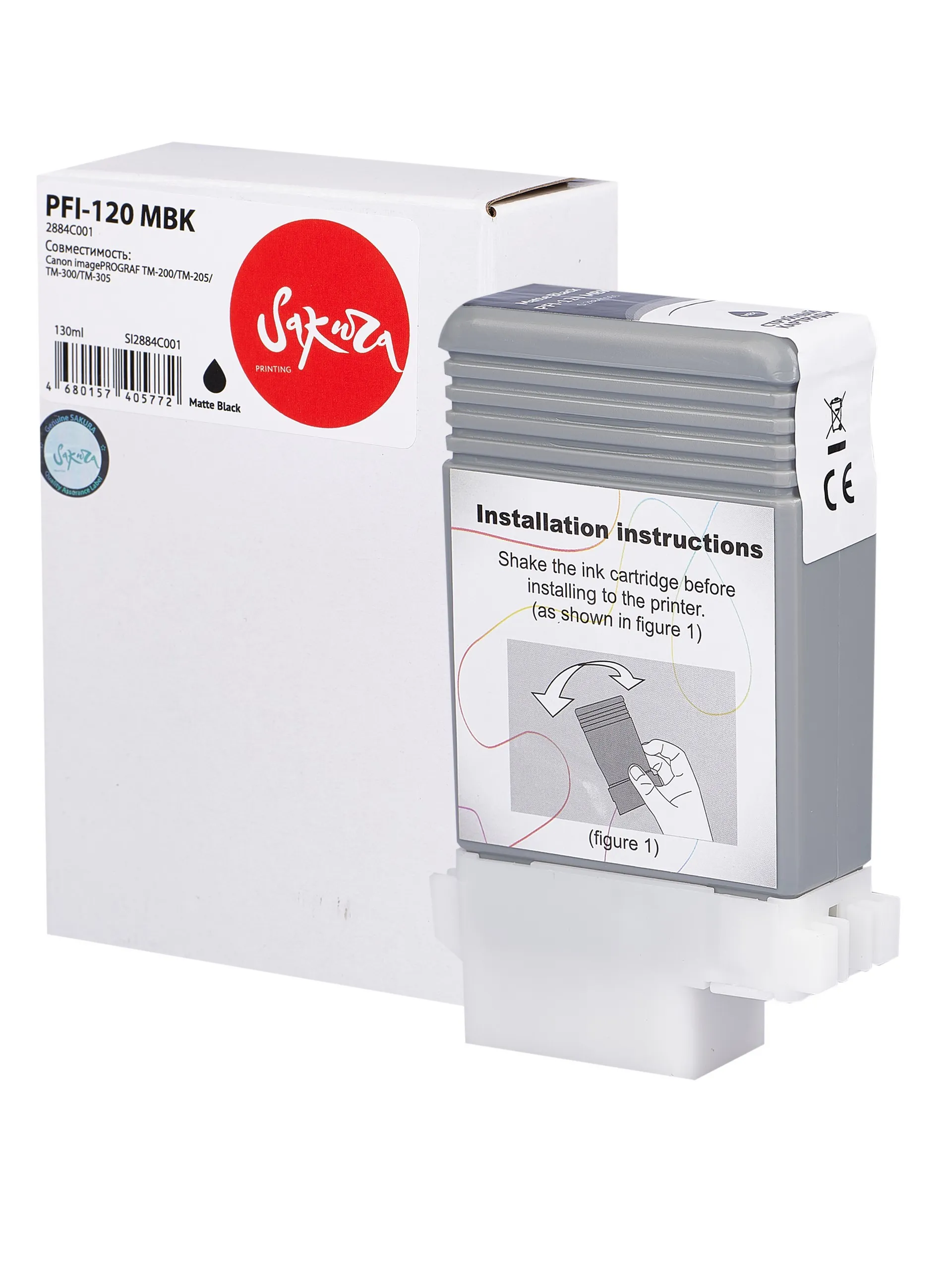 Струйный картридж Sakura 2884C001 (PFI-120 MBK) предназначен для использования с принтерами Canon imagePROGRAF TM-200, TM-205, TM-300 и TM-305. Он обеспечивает высококачественную печать пигментными чернилами черного матового цвета и имеет ёмкость 130 мл. Этот совместимый картридж идеально подходит для повседневной печати.