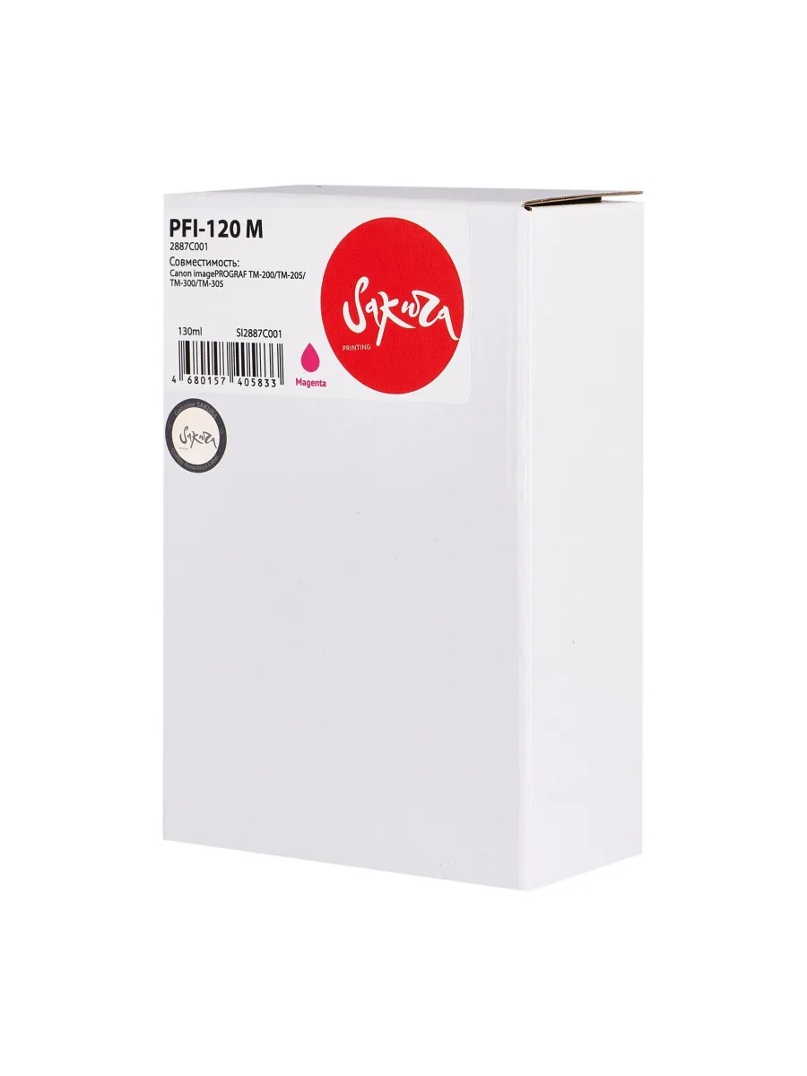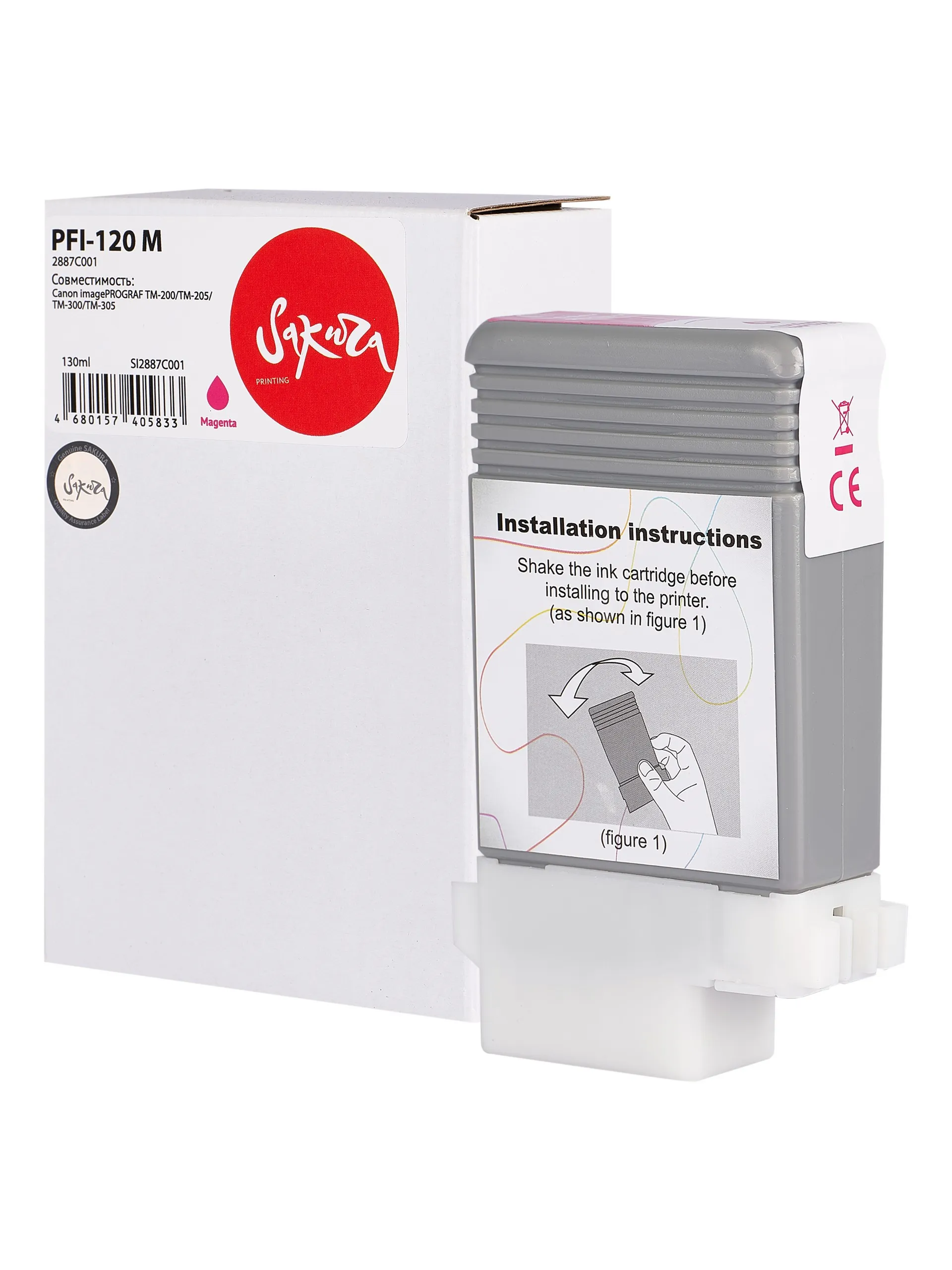 Струйный картридж Sakura 2887C001 ( PFI-120 M) предназначен для использования с принтерами Canon imagePROGRAF TM-200, TM-205, TM-300 и TM-305. Он обеспечивает высококачественную печать пигментными чернилами пурпурного цвета и имеет ёмкость 130 мл. Этот совместимый картридж идеально подходит для повседневной печати.