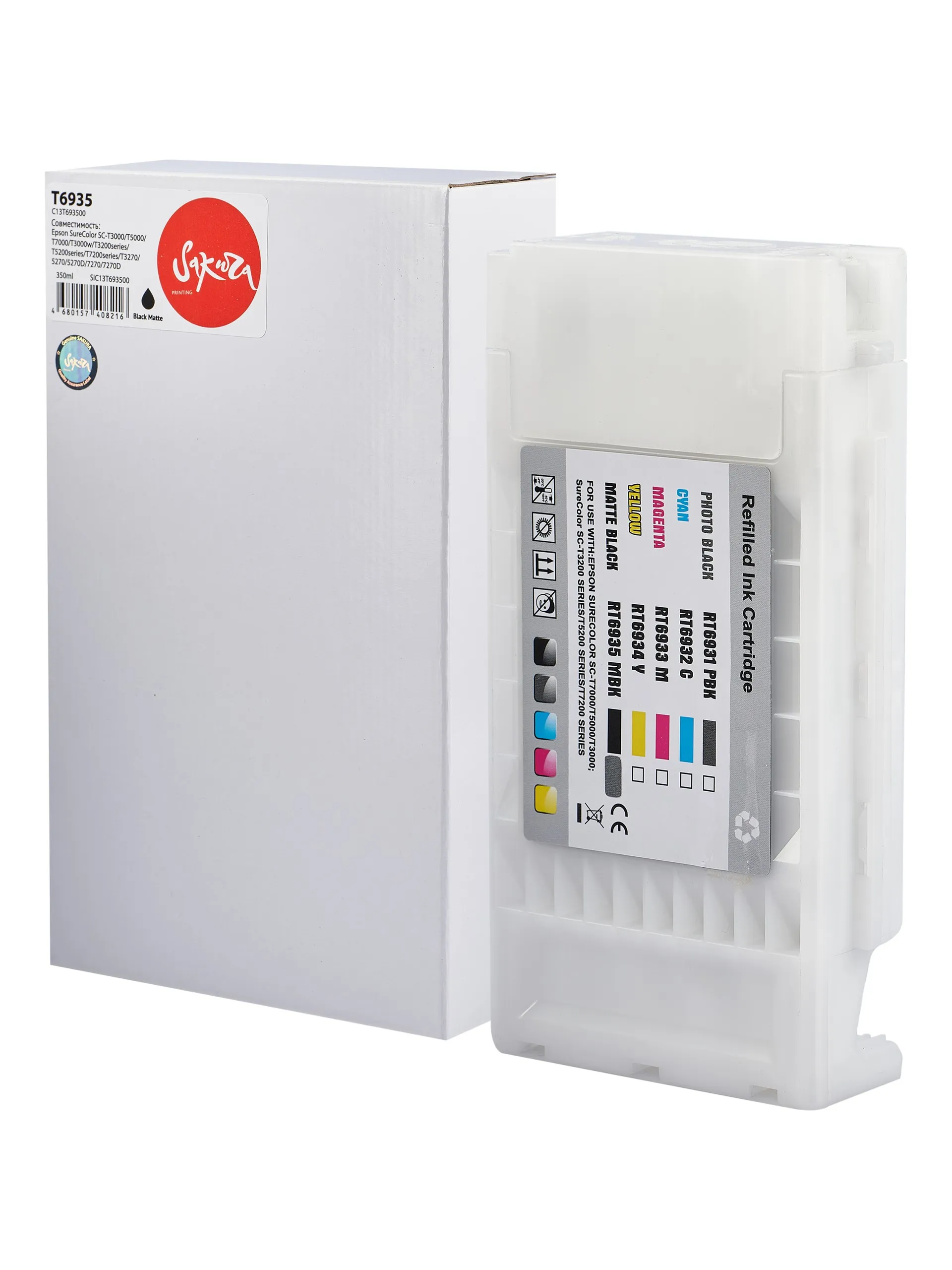 Струйный картридж Sakura C13T693500 предназначен для использования в принтерах Epson SureColor SC-T3000, T5000, T7000, T3000w, T3200series, T5200series, T7200series, T3270, 5270, 5270D и 7270, 7270D. Он обеспечивает чёрно-белую печать с использованием водорастворимых чернил матового чёрного цвета. Объём картриджа составляет 350 мл, что гарантирует достаточное количество чернил для выполнения множества задач.